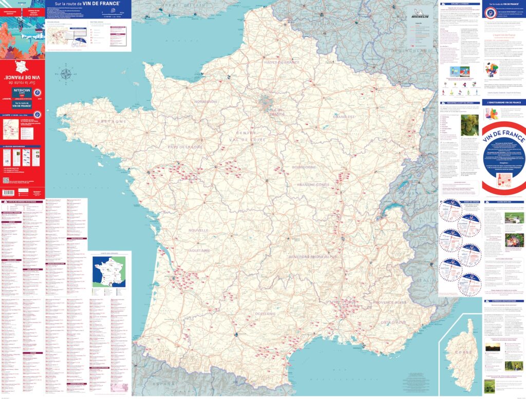 C’est l’idée de cette nouvelle carte Michelin consacrée à l’œnotourisme, réalisée en collaboration avec Michelin Éditions et Vin de France. Cette première carte Michelin dédiée à cet univers recense 252 caves et maisons, ainsi que des offres de restauration et d’hébergement chez des vignerons.